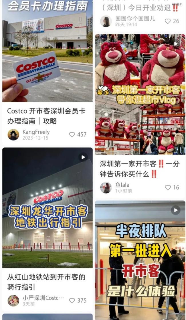 華南首店的火熱程度,除了消費者,還吸引了代購、探店博主等群體。開業當天,小紅書等社交媒體上立即推出與開市客有關的排隊攻略、購物攻略,評論區更是成為開市客會員卡的線上商場和交換點:“手持Costco副卡,蹲壹個山姆副卡互換”。