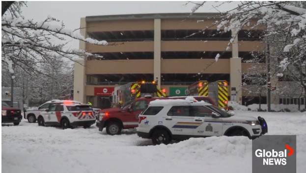 昨天上午 9 點 30 分左右,10輛溫哥華消防救援隊車輛冒著大雪,對位於 Thunderbird Boulevard 和 Wesbrook Mall 的 Fraser Hall 發生的事件進行了救援。