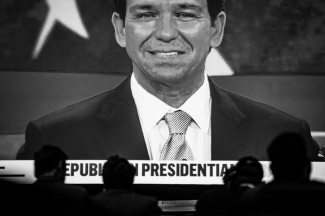 我这么说并不刻薄。好吧,有点刻薄,但这是为了表达一个严肃观点。德桑蒂斯是一个大州的成功州长,是聪明人,还有一个完美的家庭。但他也是那种倒霉的政治人物之一,这类政客经不起时间考验,他们的早期承诺和民调数字随着时间流逝而逐渐消退:人们看到他的次数越多,似乎就越不喜欢他。他在竞选活动中的表现呆板又笨拙,而且粗鲁傲慢,人际交流能力像是设计糟糕的人工智能。他给人的印象是一个彻头彻脑的怪咖,而且是以一种不讨喜的方式呈现出来。