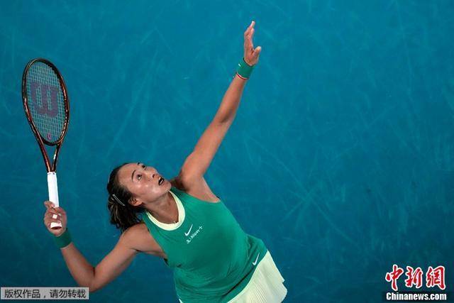 图为郑钦文在比赛中