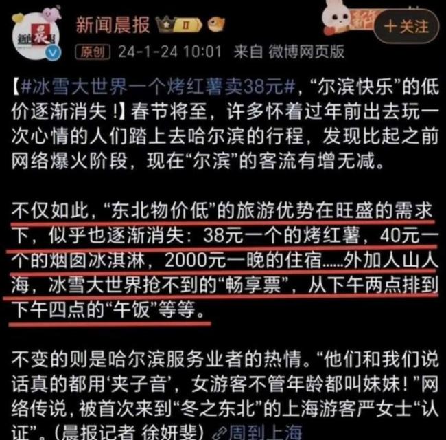 引言:“38元壹個烤紅薯”就像之前遭人詬病的“圍爐煮茶”壹樣被網友調侃。本就是冬天叁件套的老客戶,之前攢足了勁沖到20多塊就被大家抵制,如今哈爾濱是不是“新官上任叁把火”?再這樣炒下去紅薯都快吃不起了!