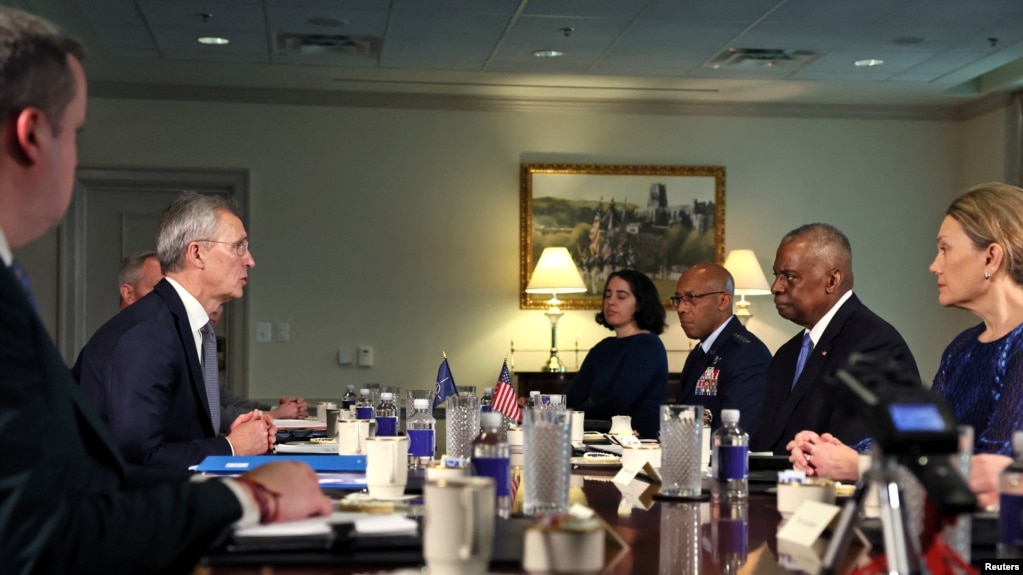 美國國防部長奧斯汀與北約秘書長斯托爾滕貝格在伍角大樓舉行雙邊會談。