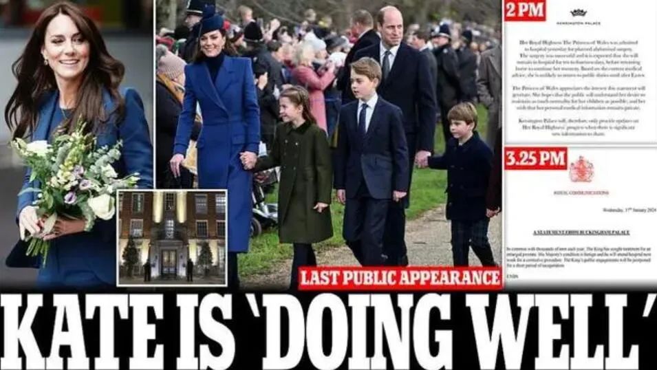 凱特自打出席完去年12月23日那場公務,就仿佛突然消失,23天都沒見人影。緊接著肯辛頓宮1月17日突然發表聲明,說她已入院做了場手術。