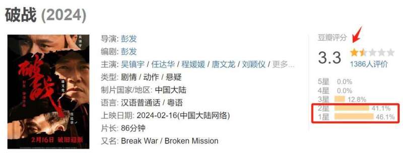 誰能想到,2024年的首部爛片電影,居然是壹部名導+影帝的院線電影,之後因票房成績慘不忍睹,及時宣布撤檔,改上“網大”。目前,某瓣的評分僅有3.3,八成人都只給壹、兩星的評價。
