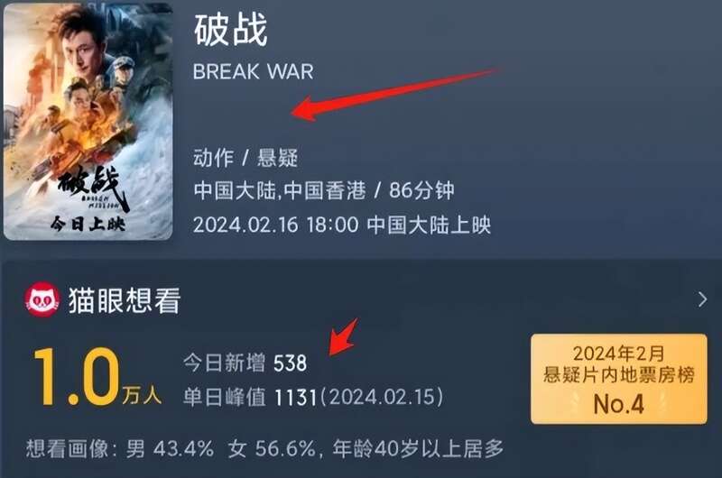 因此,在某眼的“想看”人數上,截止到上映前,也有壹萬人。