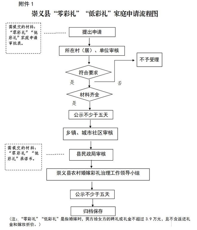 崇义县民政局的一名工作人员介绍,符合条件的新婚家庭需要向所在村(居)提出申请,经单位审核符合要求后,再进行不少于5天的公示。之后申报者即可享受礼遇政策的所有适用条件。