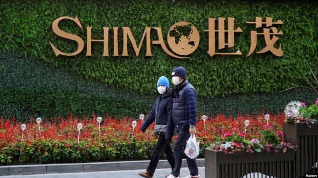 資料照:行人走過上海街頭世茂集團的標識。(2022年1月13日)