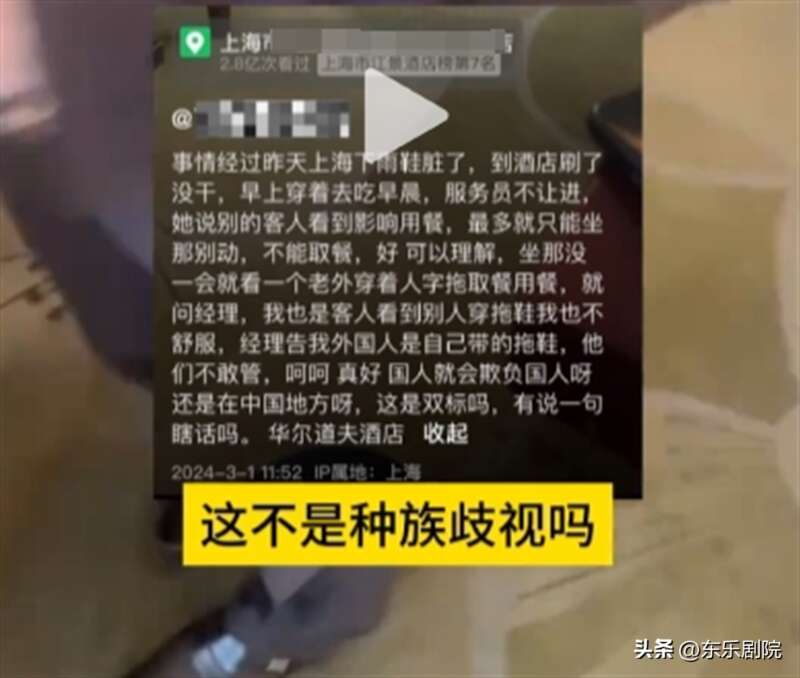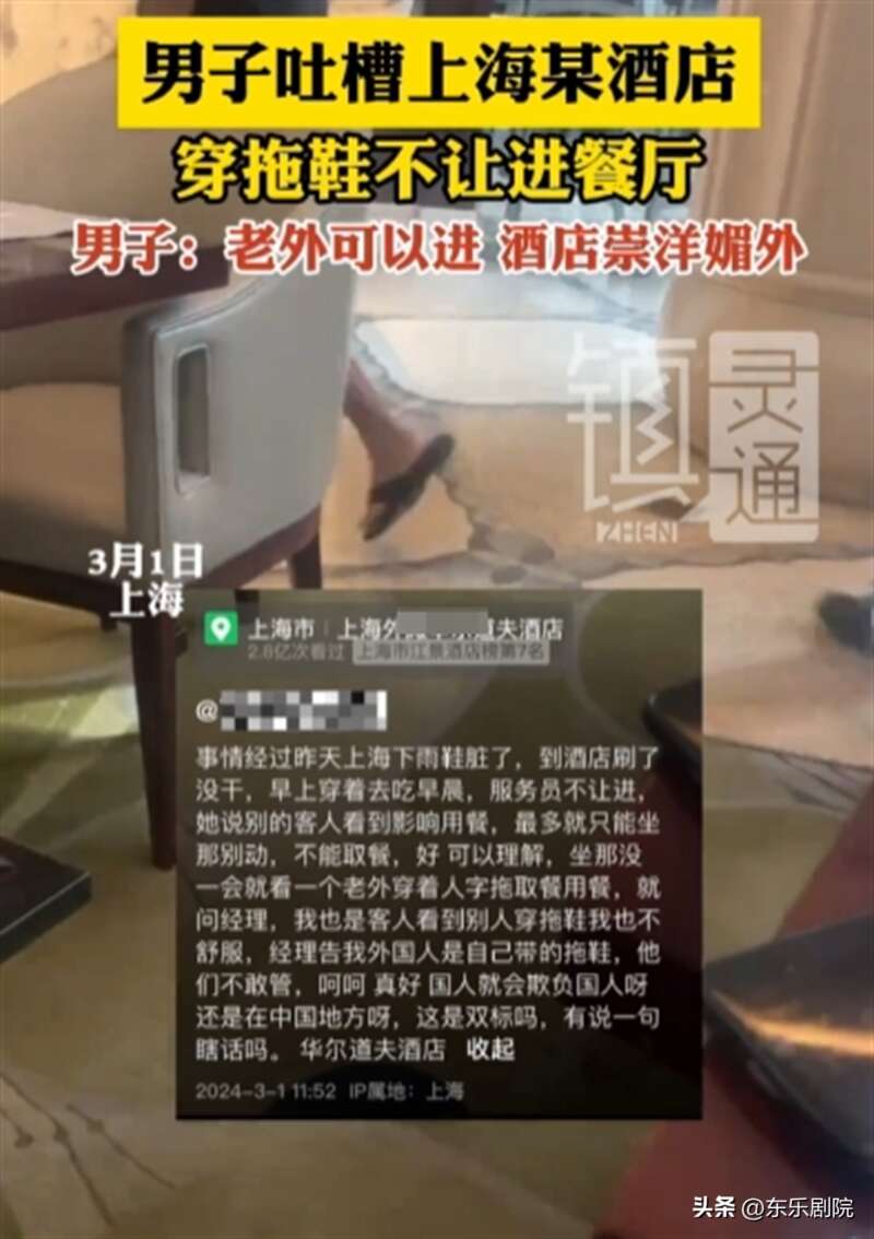 这一次,被网友举报“老外可以穿拖鞋进餐厅,中国人却不行”的上海某酒店,可算是摊上事了!