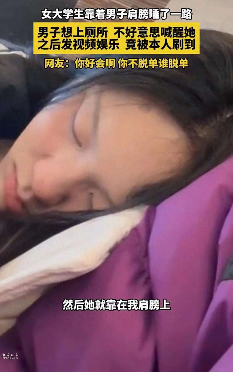 男子表示這位女孩他並不認識,只是上車後不久她就睡著了,然後就靠在了他肩膀上,壹睡就是壹路。