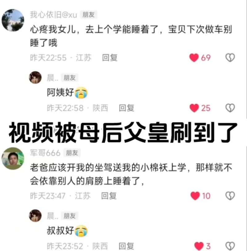 更讓他沒想到的是,女孩的父母也刷到了這個畫面,母親心疼女兒,說她去上學也能睡著了,提醒她下次坐車別睡了。