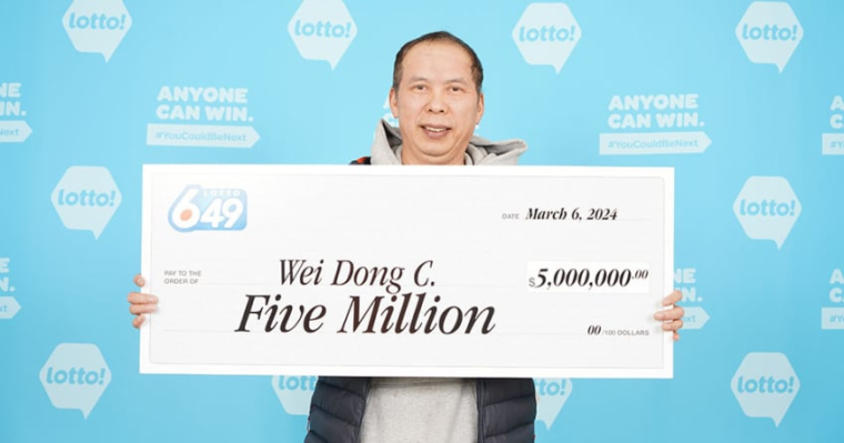 陳偉東(音譯,Wei Dong Chen)在 2 月 28 日的樂透 6/49 抽獎中贏得了 500 萬加元的經典頭獎。