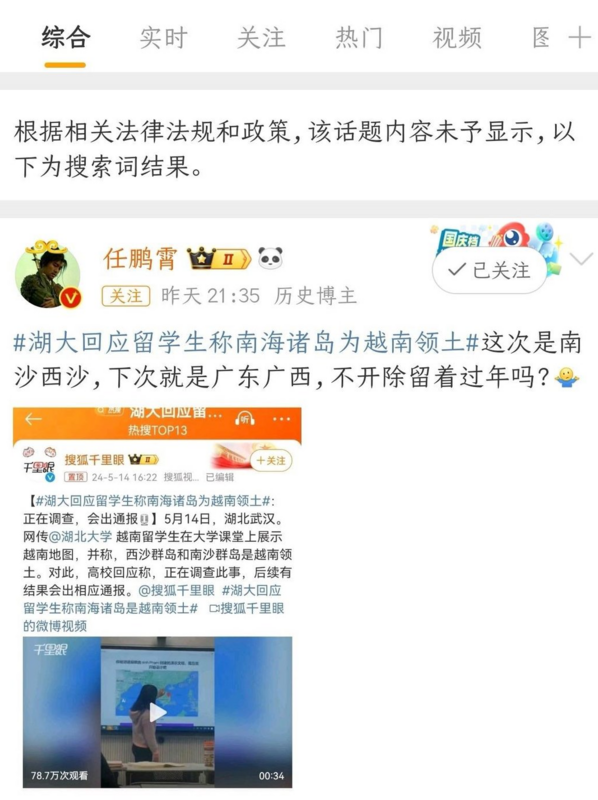 X(前推特)账号“Jacobson贴贴BOT”今(18)日发文表示,湖北大学的越南籍留学生、全额奖学金得主林氏秋妆,在课堂上展示越南地图,地图中包含了西沙群岛和南沙群岛。
