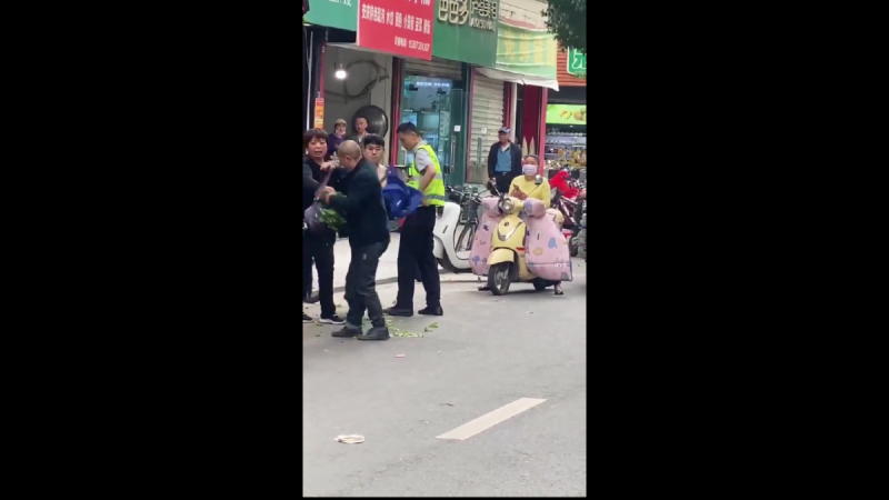 在湖北孝感市壹名城管在街頭對壹名賣菜的老人施暴。 圖 : 翻攝自影片