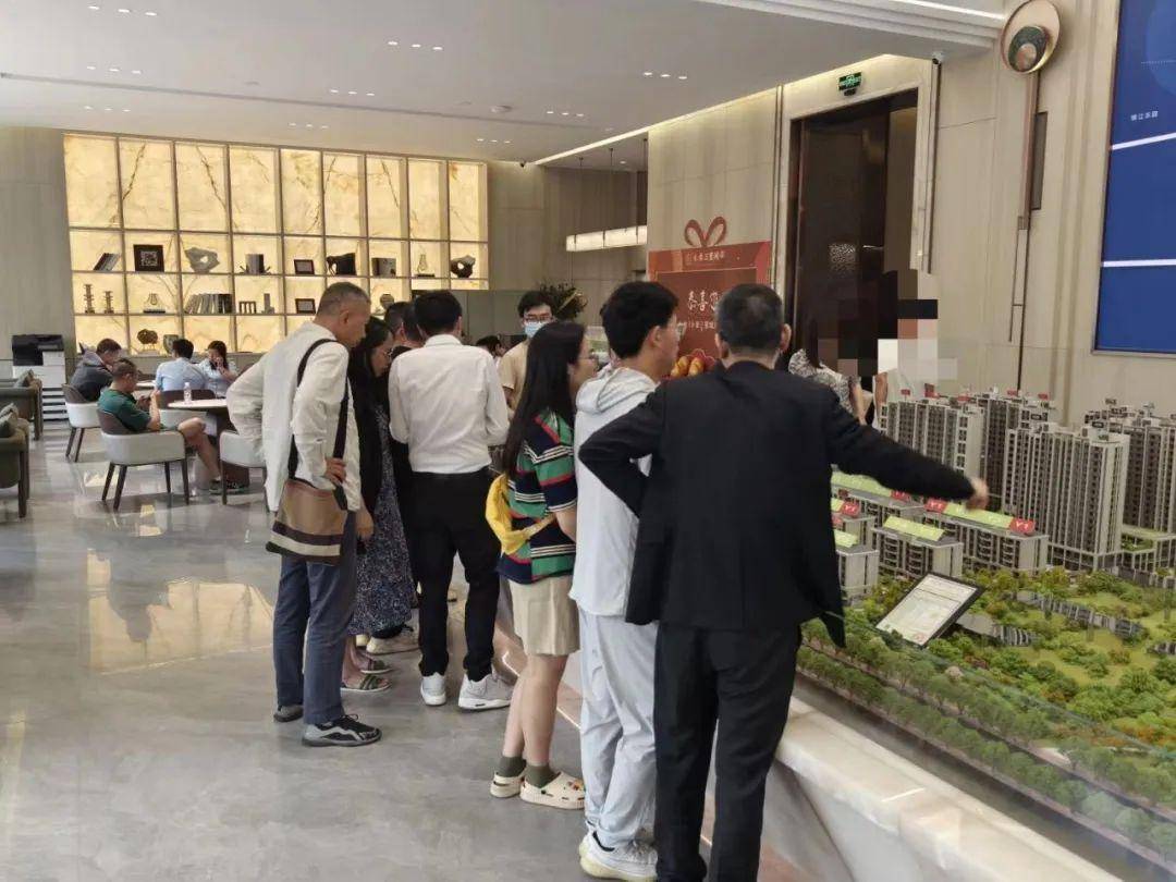 6月1日,证券时报记者来到上海浦东中环和外环之间的某在建楼盘售楼处,只见售楼大厅人声鼎沸。由于参观人数过多,工作人员难以抽身,看房者被要求在前台登记后,等待“凑足一拨人”,才可以被带进样板房。