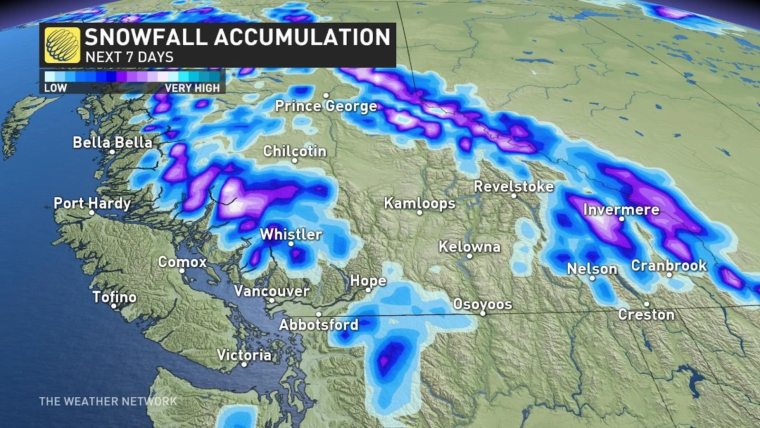 由於低壓系統控制西海岸,天氣將保持較冷。高空溫度將遠低於季節性溫度,本周溫哥華島和海岸山脈的冰凍水平將降至 1500 米。