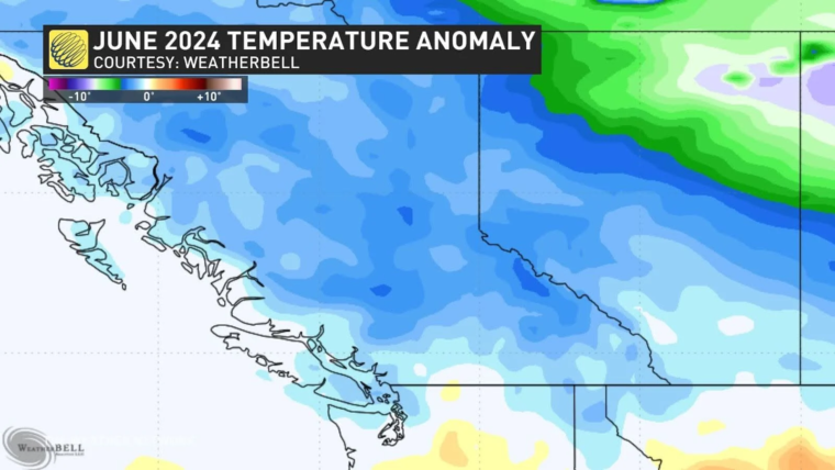 今年六月BC省的氣候將與過去幾年的六月的氣候截然不同,天氣將更加潮濕涼爽。照目前的速度,我們甚至可能迎來 2020 年以來最涼爽的六月。