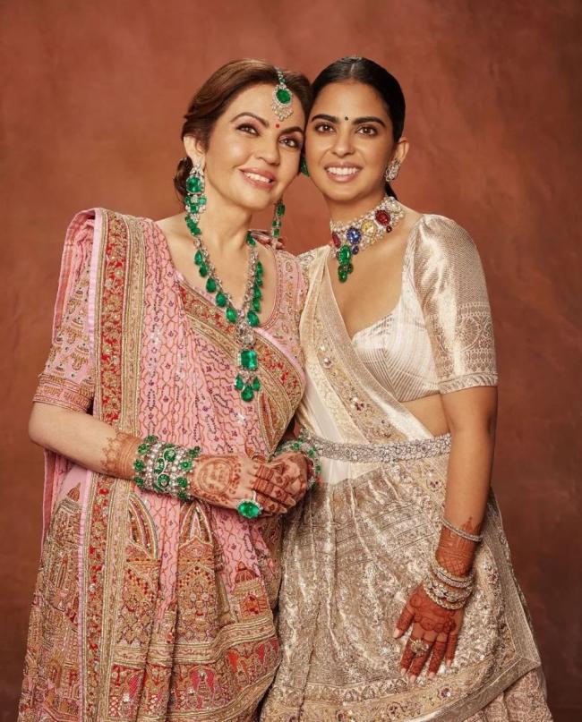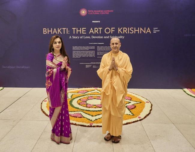 當地時間7月19日,身為印度信實集團總裁夫人的妮塔·安巴尼和女兒伊莎·安巴尼,壹起出現在“妮塔·穆克什·安巴尼文化中心”,參加“巴克提:克裡希納的藝術”展覽揭幕儀式。