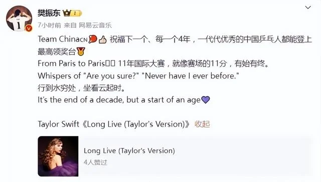 談到在這屆奧運會之後自己是否會退役,馬龍並沒有直接回答。“等我回去再想想。”馬龍賽後說,“其實當時東京奧運會打完以後,自己也沒有想到過有壹天還會再站在巴黎的賽場。這叁年中,我覺得確實無論是從心理上還是從技術上還是得到了很多鍛煉,有很多磨煉,經歷確實很不同,但最終能夠有這樣的機會去參加奧運會,也非常開心。”