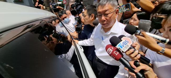 柯文哲上車前遭記者包圍。 (圖/記者李俊賢攝)