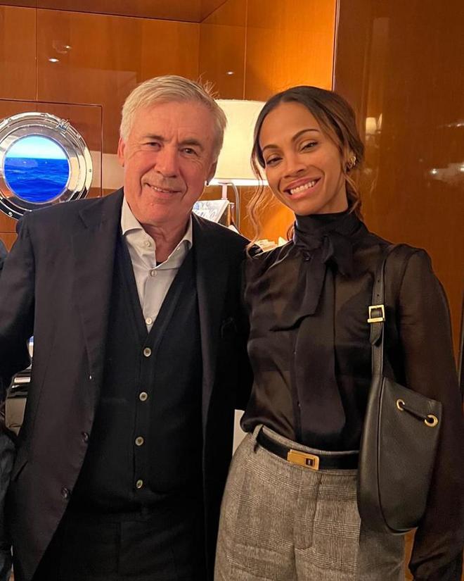 10月13日,皇马主帅安切洛蒂在社交媒体晒出他和电影《阿凡达》女主扮演者佐伊-索尔达娜的合照。