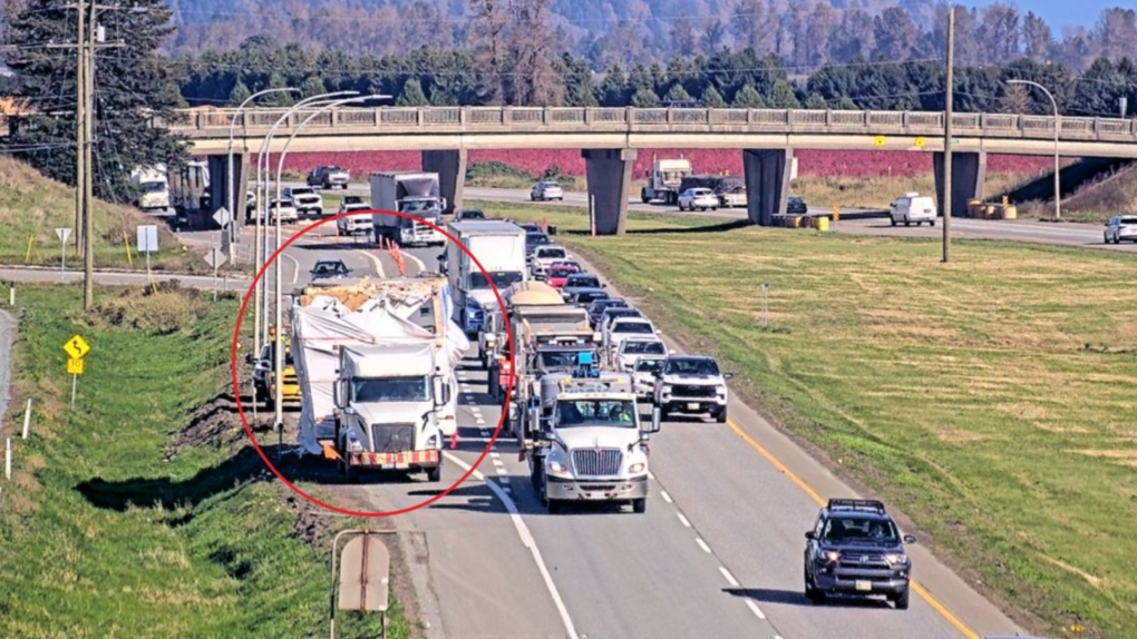 BC省高速巡逻队表示,碰撞发生在 2024 年 10 月 11 日星期五中午 12 点 30 分之前。这辆商用半挂车在撞上立交桥时正在左侧(超车)车道向西行驶。