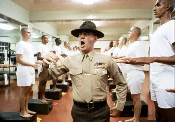 著名的反战电影《Full Metal Jacket 全金属外壳》,由斯坦利·库布里克导演。用了近40分钟时间,刻画炮兵军士长哈特曼,如何训练海军陆战队新兵。
