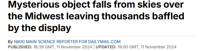 据dailymail 11月11日报道 美国多个州上空近日出现了一组发光体划过夜空、分裂消失的神秘景象,引发了数千居民的关注和猜测。在科罗拉多州、德克萨斯州、俄克拉荷马州和堪萨斯州的部分地区,人们看到这片光芒闪烁着红橙色,宛如流星雨,停留了约60秒才逐渐消失。