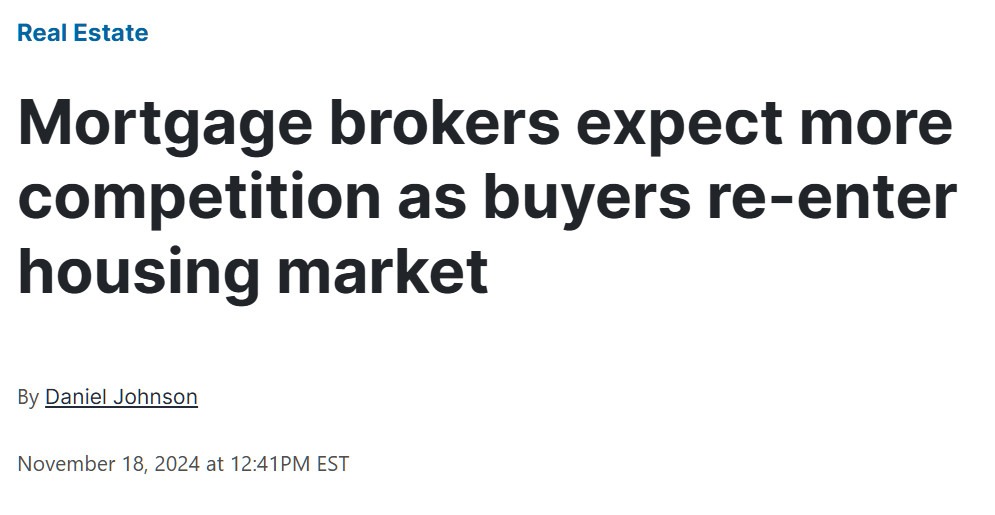 “我們看到銷售量明顯增加,而新房源數量卻出現下降。再加上 12 月 15 日生效的新抵押貸款規則以及加拿大央行預計下個月降息,競爭將進壹步加劇,”持牌抵押貸款經紀人兼 LowestRates.ca 專家 Leah Zlatkin 周壹在給 BNNBloomberg.ca 的壹份聲明中表示。