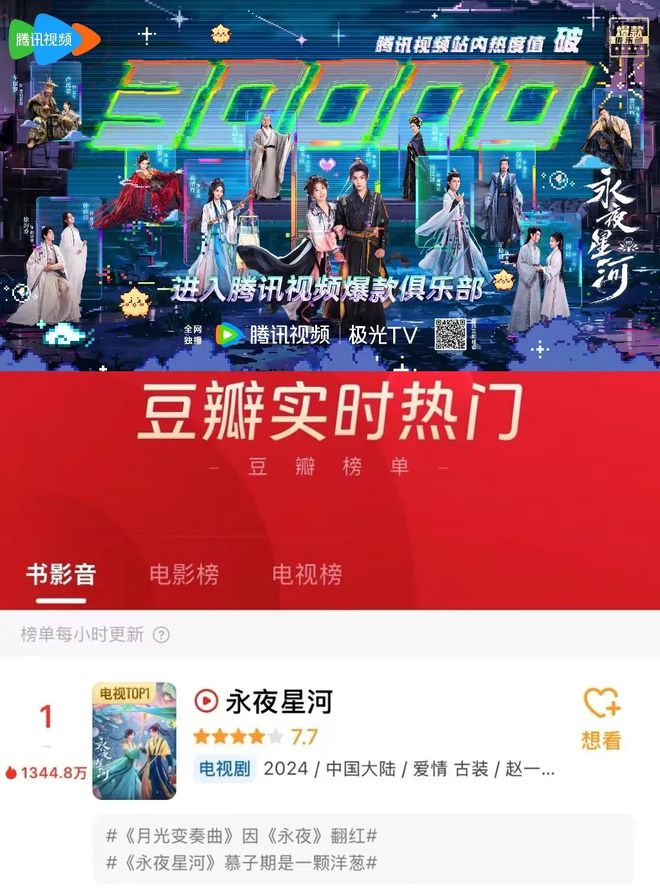 熱搜第壹:#永夜星河,沒吻戲#?!