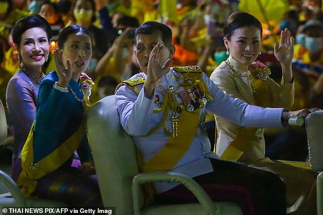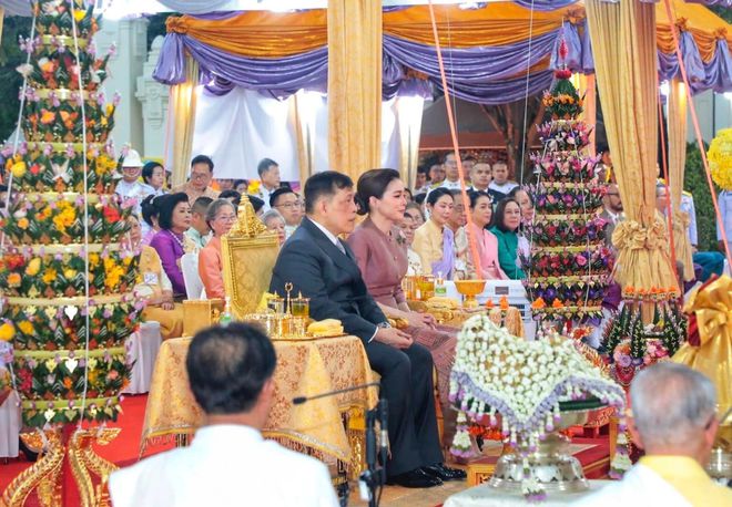 當天早些時候,泰王和蘇提達像被眾星捧月壹般,坐在了金色的椅子上,接受泰國北方王室成員的祝福,據稱這是壹場傳統的儀式。