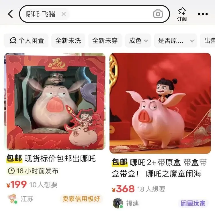在贰手平台上,電影《哪吒之魔童鬧海》周邊產品出現溢價
