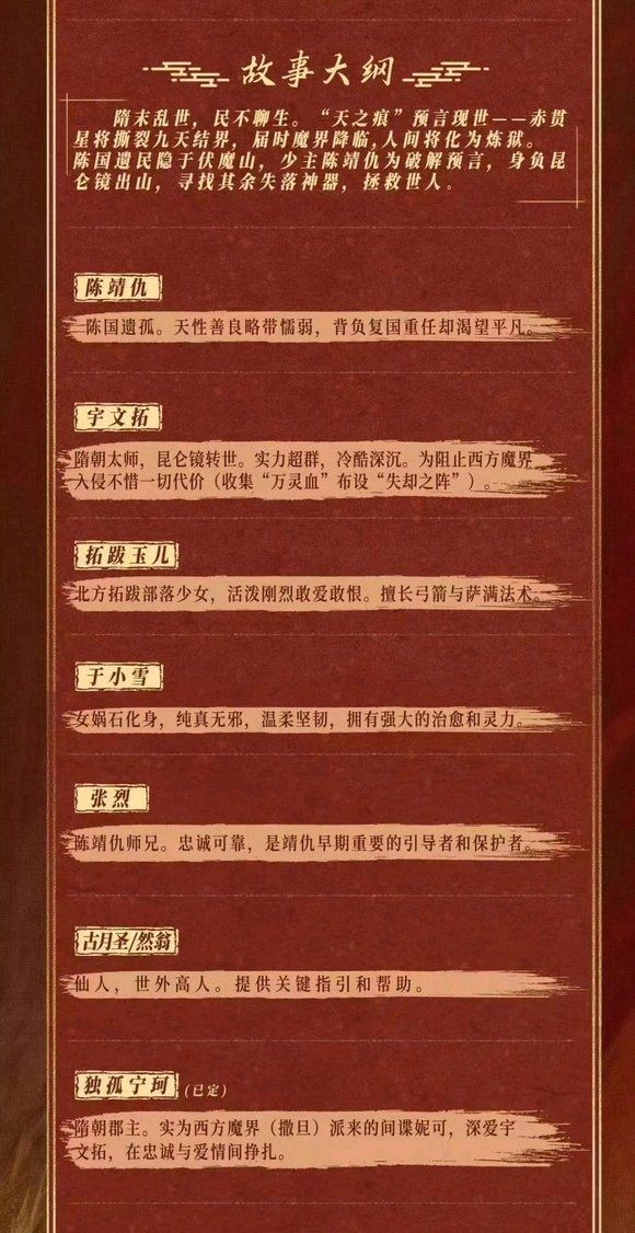 《軒轅劍》短劇版主要講述了隋末亂世,民不聊生。“天之痕”預言現世——赤貫星將撕裂九天結界,屆時魔界降臨,人間將化為煉獄。陳國遺民隱於伏魔山,少主陳靖仇為破解預言,身負昆侖鏡出山,尋找其余失落神器,拯救世人。