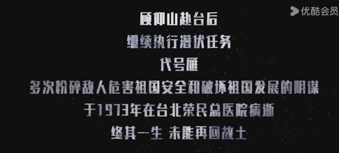 看完《守护者们》三人小分队一人牺牲,一人活到解放后数十年,一人赴台继续潜伏,到死都未能重返故土的大结局后,我也是内心万分感慨,总觉得内心有话要说,又觉得命运难以言明。