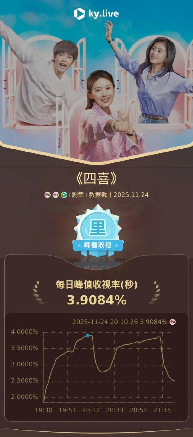 童瑶、蒋欣等人主演的家庭剧《四喜》正式收官了,虽然不少人吐槽剧情狗血,但这部剧的播放成绩还是相当不错的。腾讯站内热度27457一跃成为萤火剧场史冠,央视八套收视达到3.9%再到峰值,同时段收视率每天一个top1,这个《四喜》竟然闷声干了大!真台网“全面开花”!