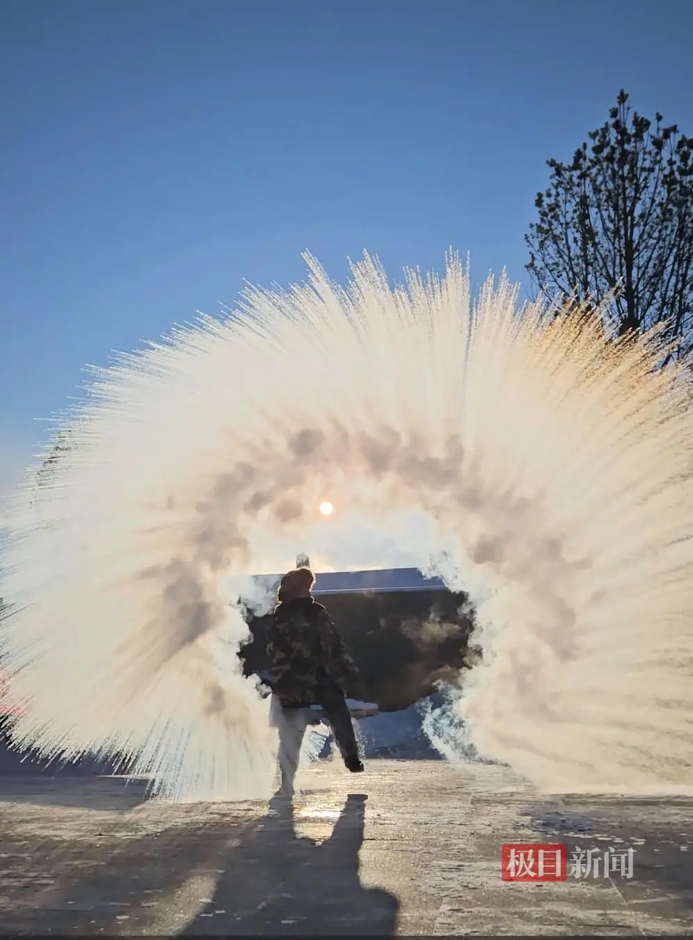毛先生稱,體驗潑水成冰時,重要的是使用開水,潑出來的熱水遇到冷空氣會凝結,產生冰霧效果,如果選好在太陽下面的角度,拍攝出來的視頻效果會更好。