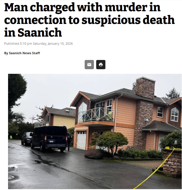 (加西網綜合)BC省薩尼奇(Saanich)本月初發生的壹起可疑死亡案件中,死者身份已由其多年好友確認,為壹宗親密伴侶暴力案件的受害者。
