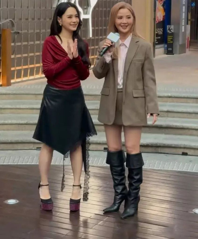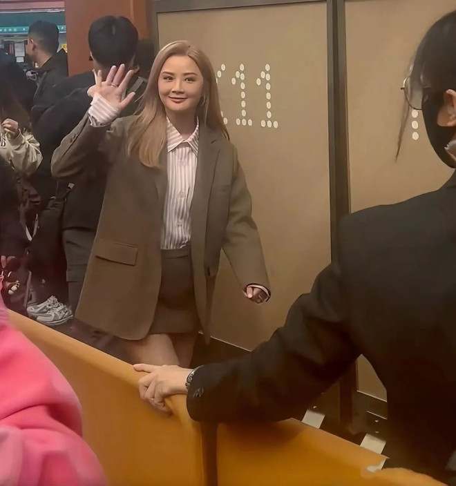她的着装更加正式一些,尤其是一头金黄色的头发,也非常洋气。看似中规中矩的打扮,其实很加分。