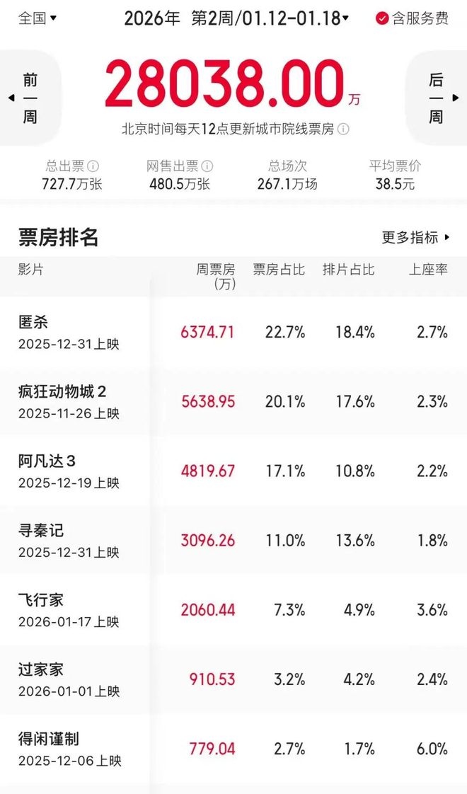 進入2026年,繼續壹周不如壹周,感覺都等著春節檔呢。
