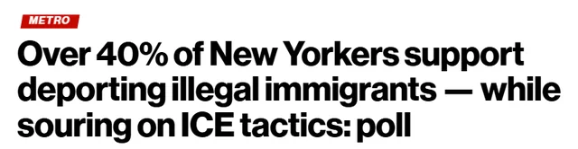 据纽约(专题)邮报2月3日报道 一项新民调显示,超过40%的纽约州选民支持驱逐非法居留美国的移民(专题),但他们对川普政府的移民与海关执法局(ICE)在明尼阿波利斯采取的行动普遍表示反感。