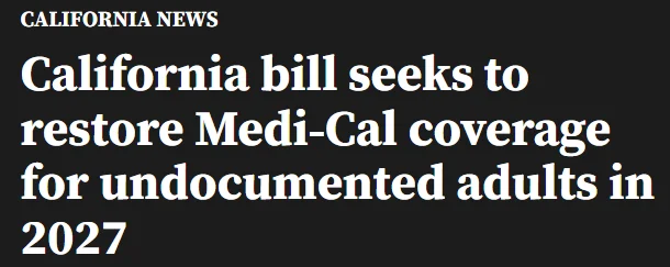 加州(专题)一项拟议法案可能会为 19 岁及以上的无证加州居民再次获得 Medi-Cal 医疗保险铺平道路,该法案将于 2027 年 1 月 1 日生效。