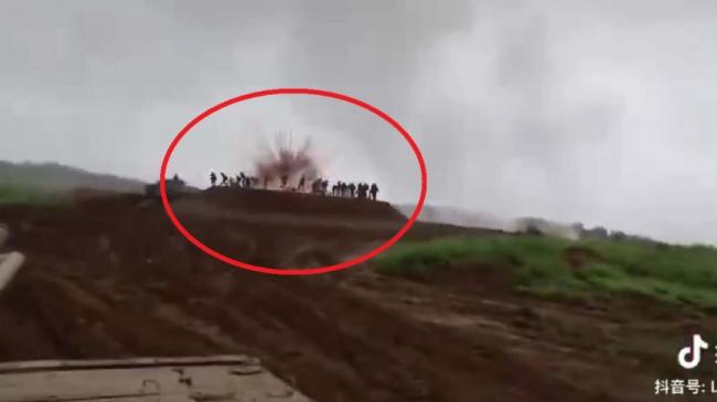 该视频疑似一名士兵在行驶的战场上拍摄。视频显示,演习现场硝烟弥漫,这辆战车驶向充当看台的大土堆。在接近看台时,战车突然发射一枚烟雾弹,“精准”击中看台。看台上部分官员发现情况不对,急忙躲避,但已经来不及。烟雾弹很快在看台上炸开,烟雾弥漫,官员们仓皇逃窜。