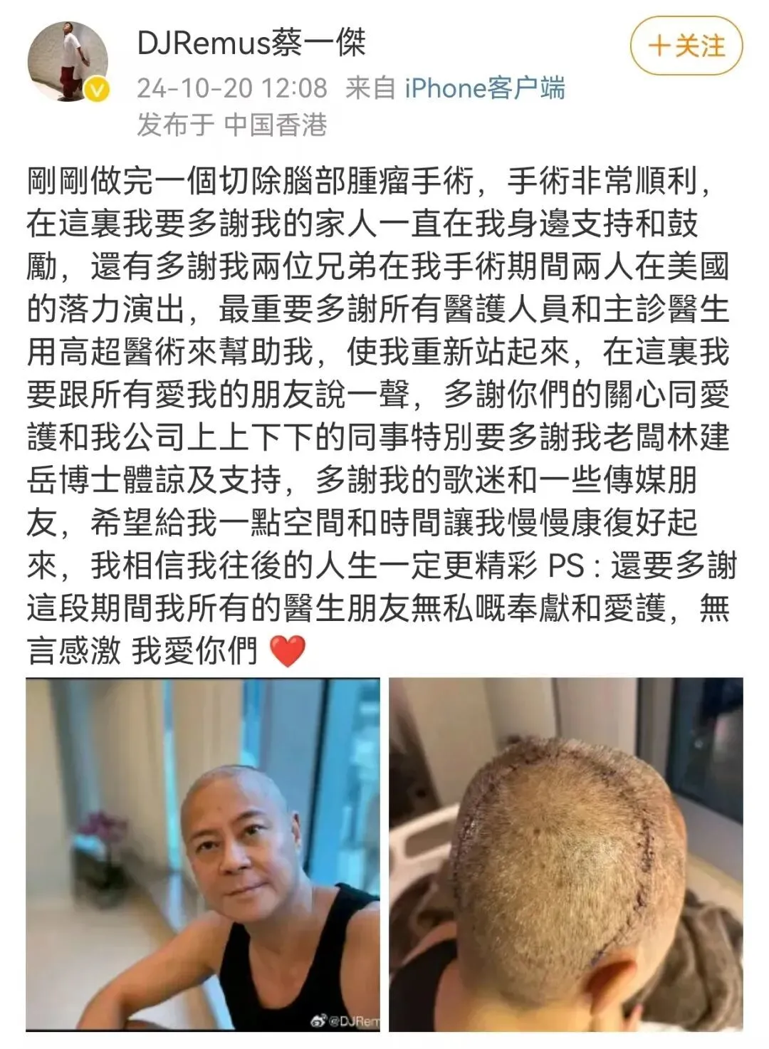 香港組合"草蜢"成員自曝,癌細胞已擴散