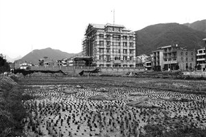 日前,有網友在溫州703論壇發帖稱:樂清市馬岙村書記占用7畝良田建私人豪宅,帖子中還貼出了多張照片,只見壹片良田邊上,矗立著壹幢雄偉的在建樓房,帖子中網友還質疑稱,該建築是用鐵路建設指標來抵充審批建的。村書記侵占良田建造豪宅是否屬實?記者昨日前往帖中提及的樂清市淡溪鎮馬岙村,進行了調查。