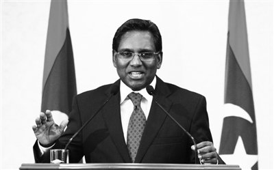 2月8日,馬爾代夫新總統瓦希德·哈桑發表講話。