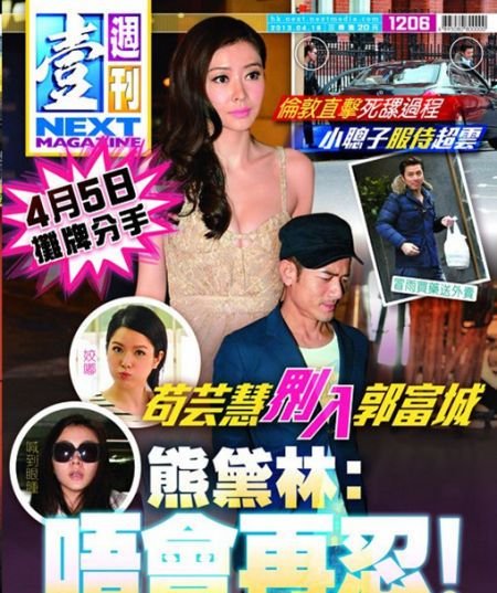 苟芸慧小郭富城19歲,兩人最近傳因為拍廣告結緣,更指贰人已秘交伍個月。自這段緋聞傳出,熊黛林就展開“守城戰”,高調拖母去看城城個唱,而郭富城也在演唱會上刻意討好女友兼大派定心丸,於台上公開說:“You are my only one”及“I love you”。在握手環節,城城明明已路過熊黛林座位,卻刻意回頭跟熊黛林揮手。提到城城當眾示愛,熊黛林立刻很緊張的說:“沒有啦。”問兩人有否柒年之癢?她說:“我們很OK。”