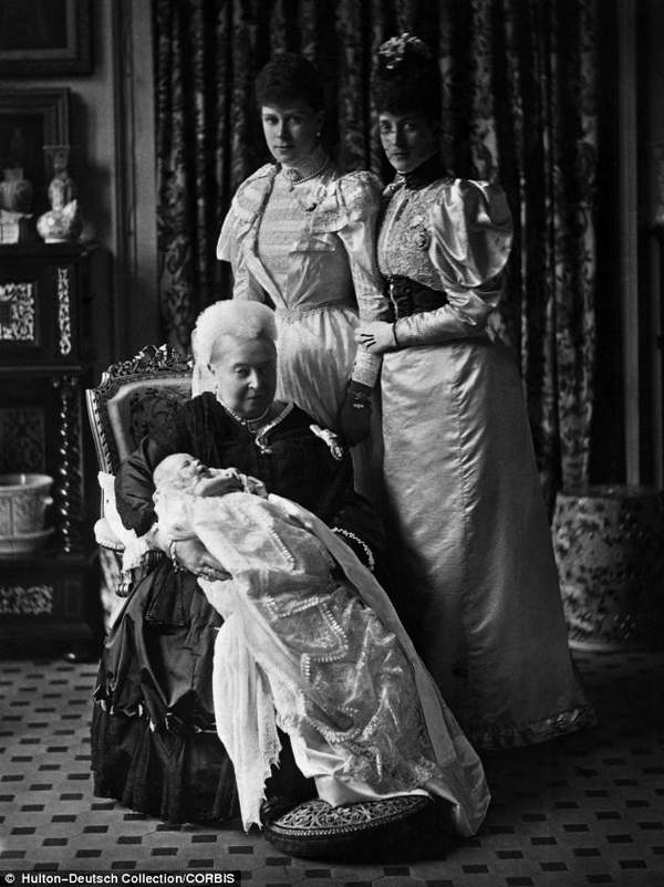 1894年,維多利亞女王抱著她的曾孫愛德華王子——後來的國王愛德華八世接受洗禮。