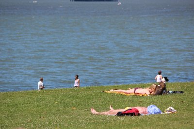 國慶日長周末,卑詩各地氣溫頻頻打破當天歷史紀錄,圖為市民到英吉列灣消暑情形。
