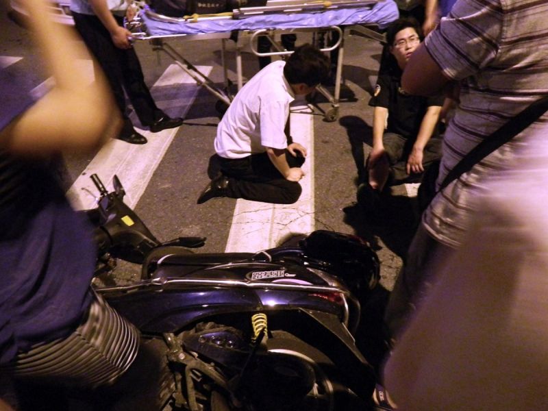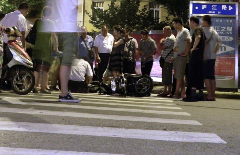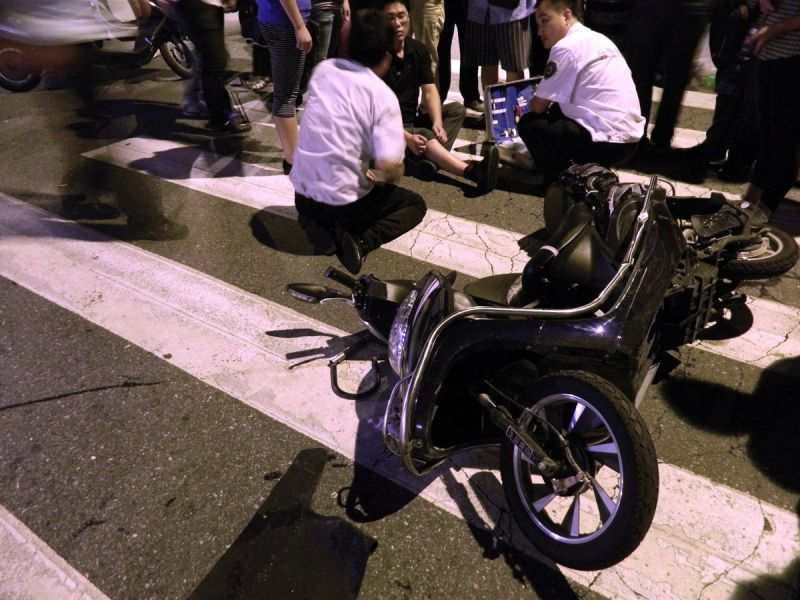 7月7日晚10點半左右,合肥,壹名駕駛轎車的白衣男子雙膝跪地,跪在壹受傷戴眼鏡男子跟前求情。據悉,涉嫌酒駕的白衣男子駕車經過合肥市金寨路右轉廬江路口時,撞上了直行騎電動車的“眼鏡男”,白衣男子在現場10多名圍觀者的眼前跪下,連續磕頭作揖,向傷者求饒,願意拿1萬元只求私了。