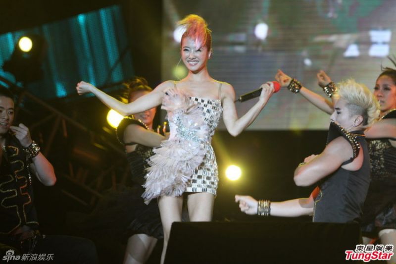 7月13日晚,“2013碧海金沙Y-POP音乐派对”在上海奉贤进行第二场。受台风影响,最后出场的蔡依林唱完一首就匆匆离开,期间动作过大底裤走光。