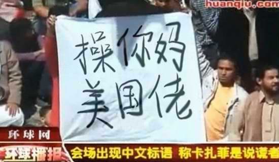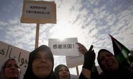 2012年,利比亞抗議活動中現中文標語。